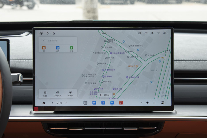 首先是车机系统,搭载的高通骁龙 8295P 芯片确实厉害。滑动屏幕、切换应用完全没有卡顿,像用手机一样流畅。发小试着同时打开导航、音乐和空调,车机依然很顺畅,没有出现延迟。中控屏支持自定义桌面,我把常用的导航、音乐 APP 放在首页,找起来很方便,不用在一堆应用里翻来翻去。