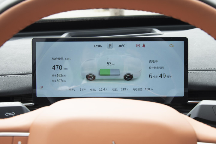 满油满电状态下,综合续航能到 1308km,周末带家人去邻市郊游,往返 500km,回来还剩一半续航,不用中途找加油站或充电桩,很省心。亏电状态下的油耗也不高,市区百公里大概 5.8L,高速匀速行驶时能降到 5.2L,加 92 号汽油就行,比同价位的燃油轿跑省不少钱。